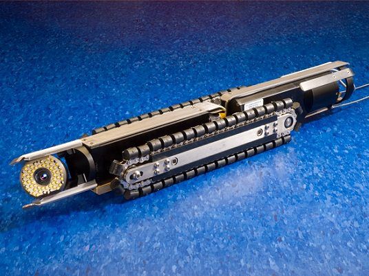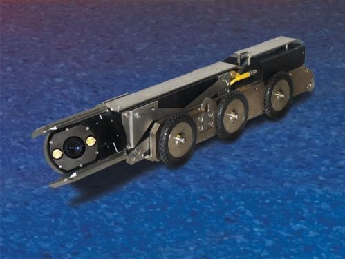 Storm drain tractors are used to video large pipes exceeding 22” in diameter. The tractor can be remotely steered to avoid obstacles and the over-sized tires assist in crawling over debris. By activating the scissor lift, the technician can adjust the camera vertically for better visibility.