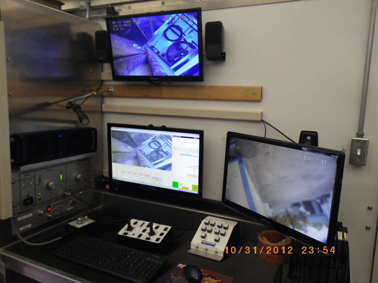 Mainline cameras routinely inspect 6” to 20” diameter pipe and can traverse up to 1200’ in a single pass. Cameras are remotely controlled, transmitting audio and video data to the on-board computer.