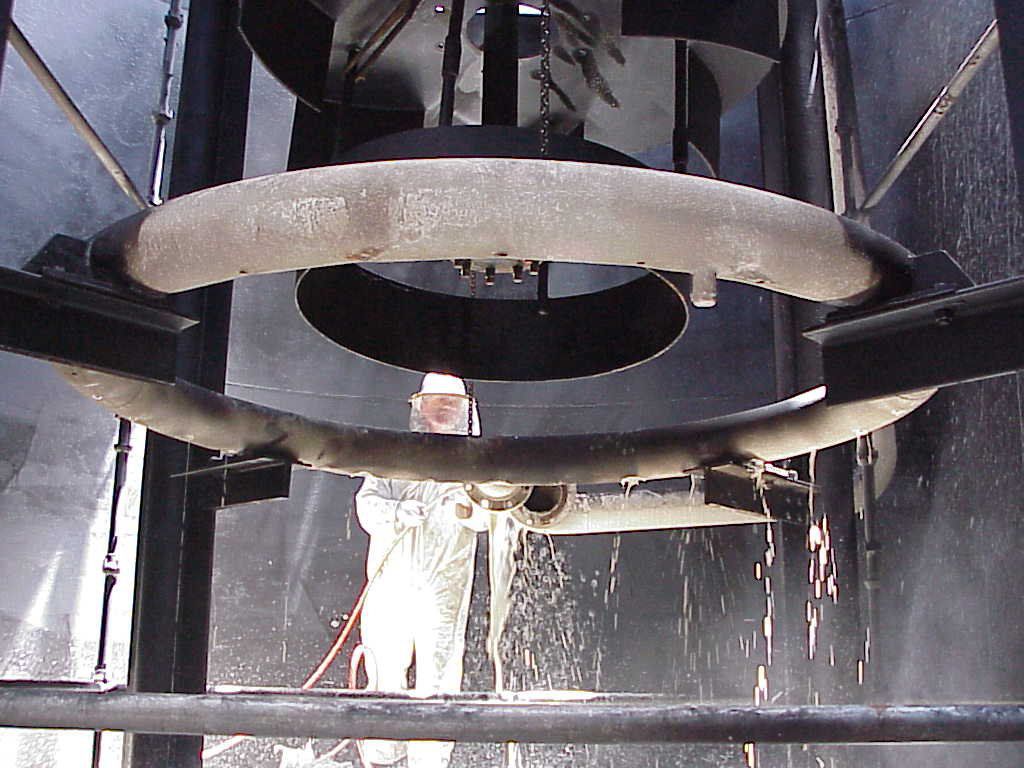 High pressure pumps and nozzles are capable of producing between 4,000 and 10,000 psi of water force to strip and clear residue from interior and exterior surfaces. Steam can be incorporated into the cleaning process when necessary to achieve the desired results.