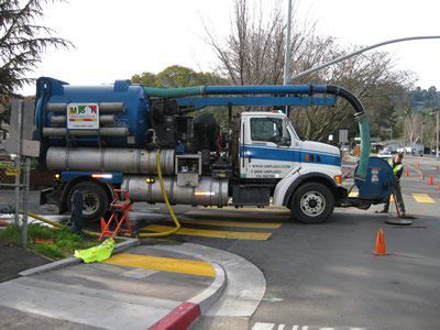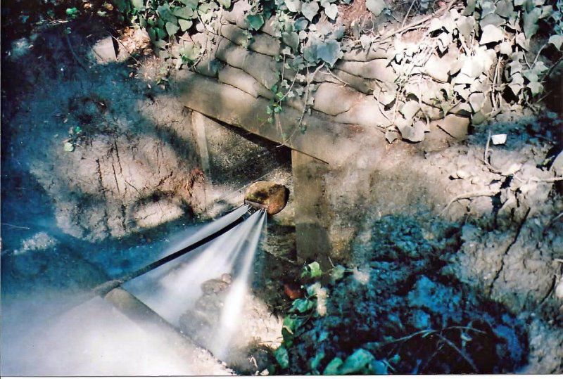 Pipes are scoured with water propelled high pressure jets capable of producing from 2,000-4,000 psi to remove accumulated debris and return the pipe to its maximum flow capacity. A variety of specialized nozzles and cutters may also be used to remove hardened deposits and root intrusions. In situations where high flow hinders the efficiency of the cleaning operation, the pipe will be isolated using plugs and/or by-pass pumping.