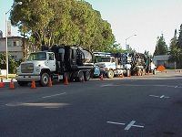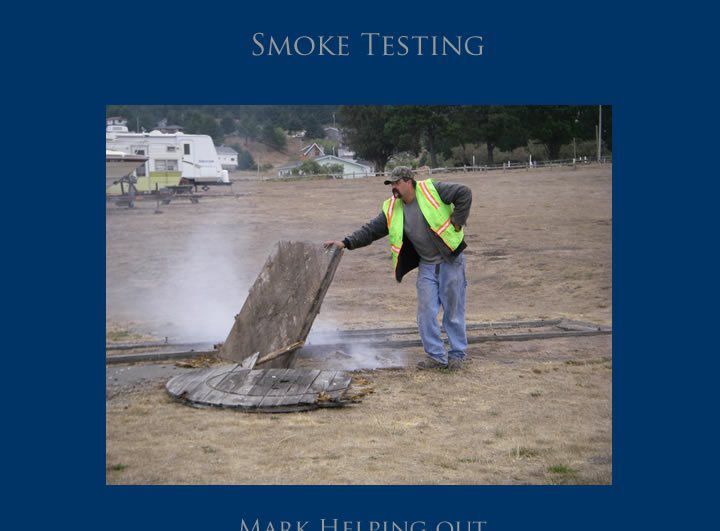 Smoke testing is a useful tool in the detection of sources of infiltration where ground water and storm runoff can enter the sanitary sewer system. After a section of the sewer system has been isolated, non-toxic smoke is forced into the pipe at the manhole using blowers. The forced smoke will escape through any openings in the pipe and appear on the surface. These locations are documented and photographed for evaluation. This procedure is most effective when performed during dry weather conditions.