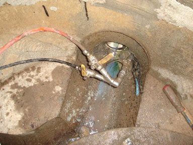 This procedure restores the manhole to the correct surface plane. In addition, defects and infiltration due to faulty risers, chimney and frame are eliminated. After the defective manhole has been cut away, a new chimney is sealed to the cone. The chimney is cut to allow the frame to sit flush with the surface and a quick drying concrete solution creates a tight seal collar.
