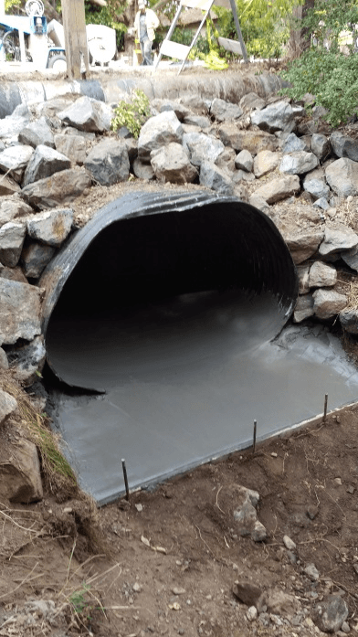 CCCP is a trenchless process used to rehabilitate damaged storm drain pipe. The CCCP method can be used with any type pipe and is particularly effective in corrugated metal pipe rehab. The interior surfaces of the host pipe are sprayed with a mortar mix specifically designed to provide a seamless, high strength seal and return the pipe to full function.