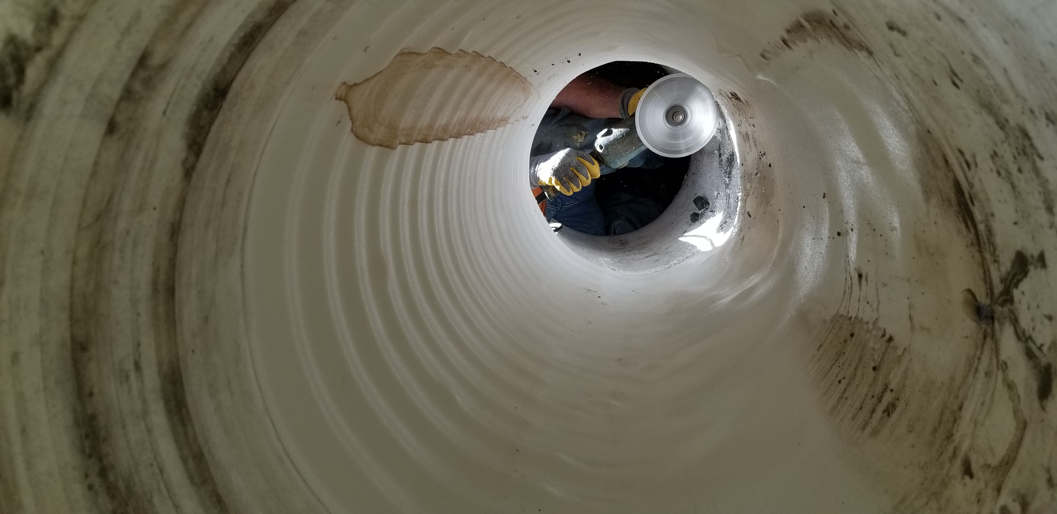 CCCP pipe lining can be applied to pipes from 30” – 120” diameter with a maximum of 500’ per segment. During the installation phase the pipe must be dry. After the last application by the spincaster, the pipe is ready for flow in 24 hours and will reach full cure in 28 days.