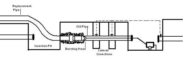 Pipe bursting is a well-established method for trenchless replacement of damaged and/or undersized sewer pipes. The bursting head is inserted into the existing pipe drawn by a hydraulic pulling unit. As the impact of the bursting head shatters the host pipe and imbeds it in the surrounding soil, the new pipe (attached to the back of the bursting head) is pulled through the void and the pipe is replaced in one action.